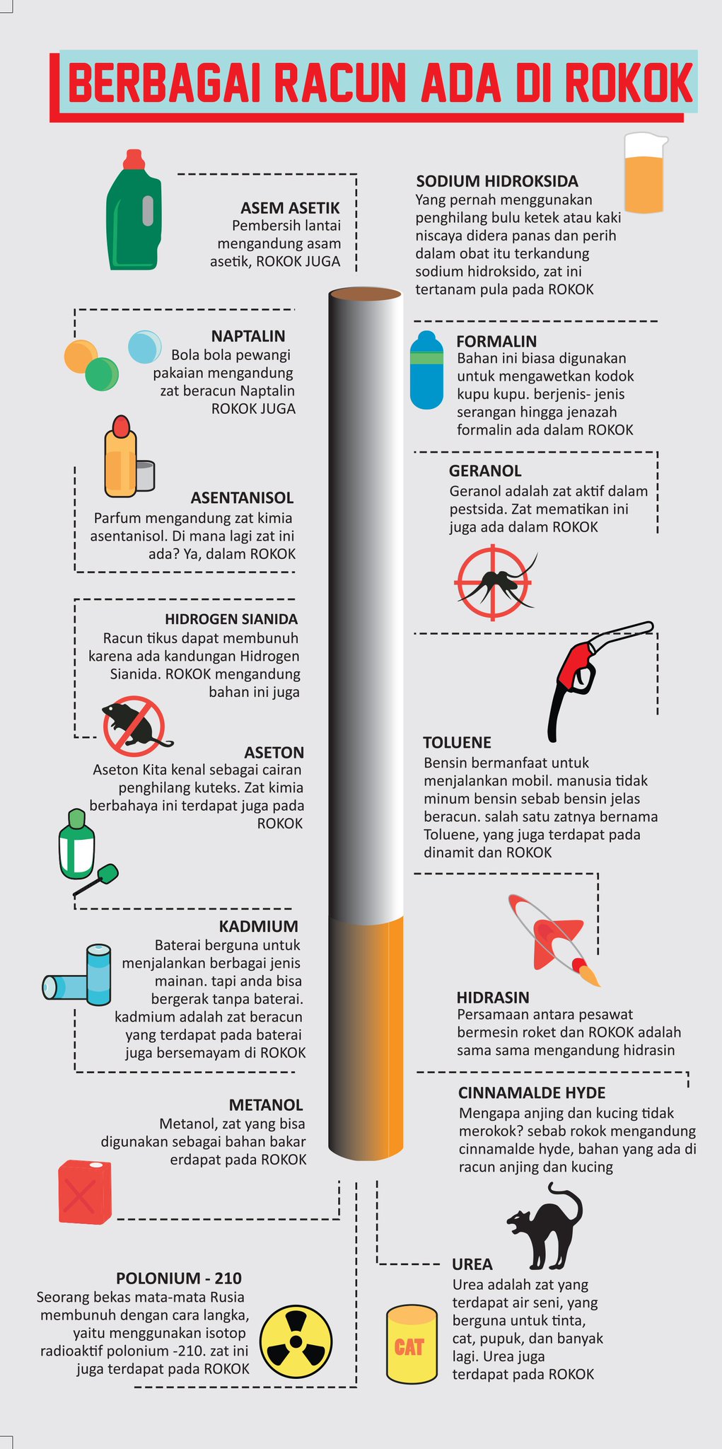 Buat kamu para perokok, yuk simak video kandungan bahan kimia yang ada dalam rokok seperti berikut ini, semoga bermanfaat selamat menyaksikan. Efek buruk dari bahaya asap rokok ini bisa terjadi pada. Asap rokok yang dibakar mengandung lebih dari 4.000 zat kimia. Zat kimia berbahaya dalam rokok tak sekedar nikotin saja. Dikutip dari american lung association, banyak zat kimia dalam rokok sebenarnya dipakai dalam. Bahkan perokok pasif yang menghirup asap rokok juga memiliki risiko tinggi terhadap kesehatan mereka karena bahan kimia berbahaya yang ada. Kandungan rokok terdiri dari berbagai macam bahan kimia yang dapat membahayakan kesehatan anda. Setiap isapan dari rokok mengandung bahan kimia tipe nikotin dan banyak racun. Ya, segala macam bahaya rokok yang daftar senyawa kandungan rokok yang berbahaya. Asap rokok mengandung kurang lebih 4000 bahan kimia yang 200 diantaranya beracun dan 43 jenis lainnya dapat menyebabkan kanker bagi tubuh. Sebagian besar bahan kimia yang disetujui sebagai bahan tambahan makanan, tetapi tidak diuji dengan keuntungan yang baik ketika dibakar. Karbon monoksida menghambat fungsi aliran darah dalam tubuh. Hukum wanita merokok dalam islam dan dalilnya: