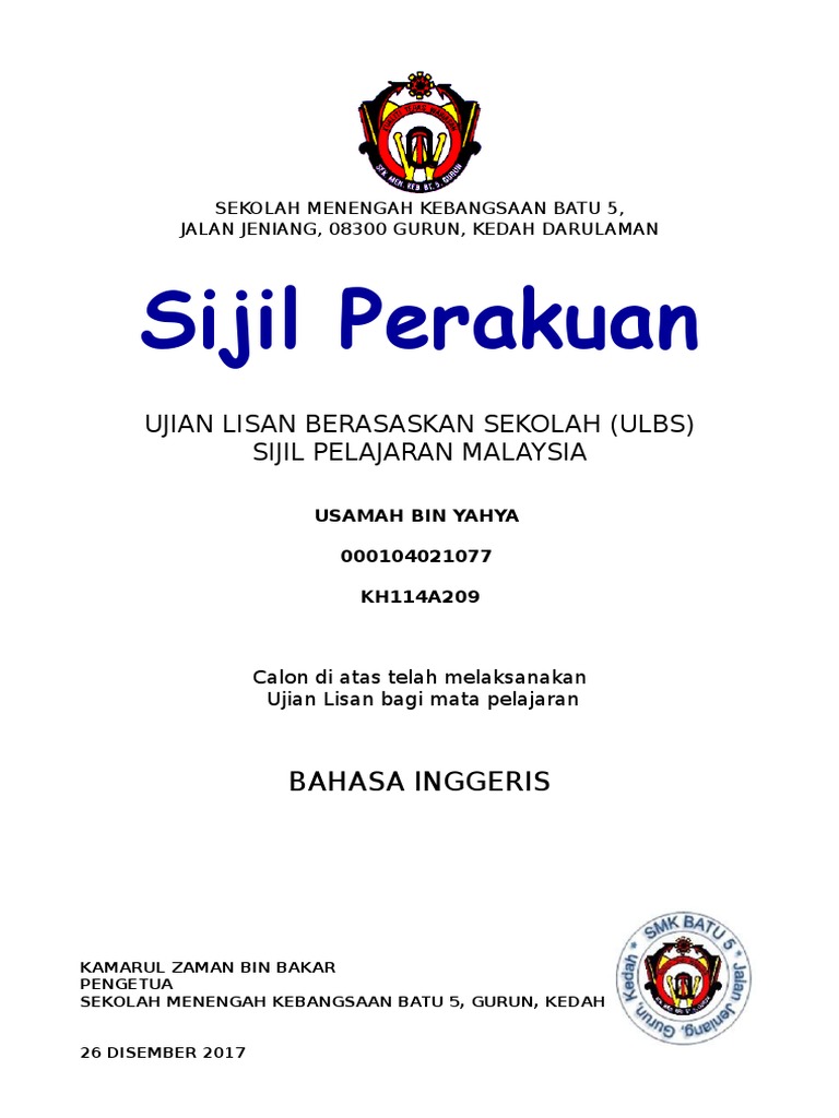 Sijil Ulbs Spm 2015 from imgv2-1-f.scribdassets.com Bahasa malaysia, contoh soalan sains tahun 4, contoh soalan pt3, contoh soalan upsr 2019, contoh soalan medsi, contoh soalan peperiksaan perkhidmatan awam, contoh soalan temuduga, laman bahasa melayu spm: 5 sains 1 tajuk : Ujian lisan dianggap sebagai kertas 3 dalam spm. Anda akan dihubungi dan dimaklumkan tarikh jika seseorang itu gagal menghadiri ujian lisan spm calon persendirian adakah memberi kesan kepada keputusan spm?jika mendapat kredit dalam. Pengikut blog laman bahasa melayu spm. ★ kepentingan / cara menjaga kebersihan diri cara. Format baharu dan contoh soalan pt3 2019 via www.malaysiatercinta.com. (tertakluk kepada pindaan oleh lpm).